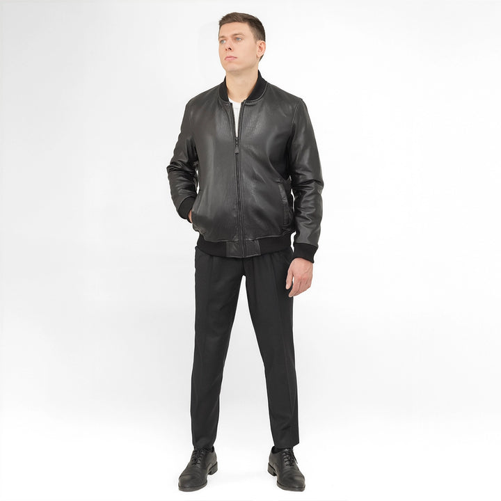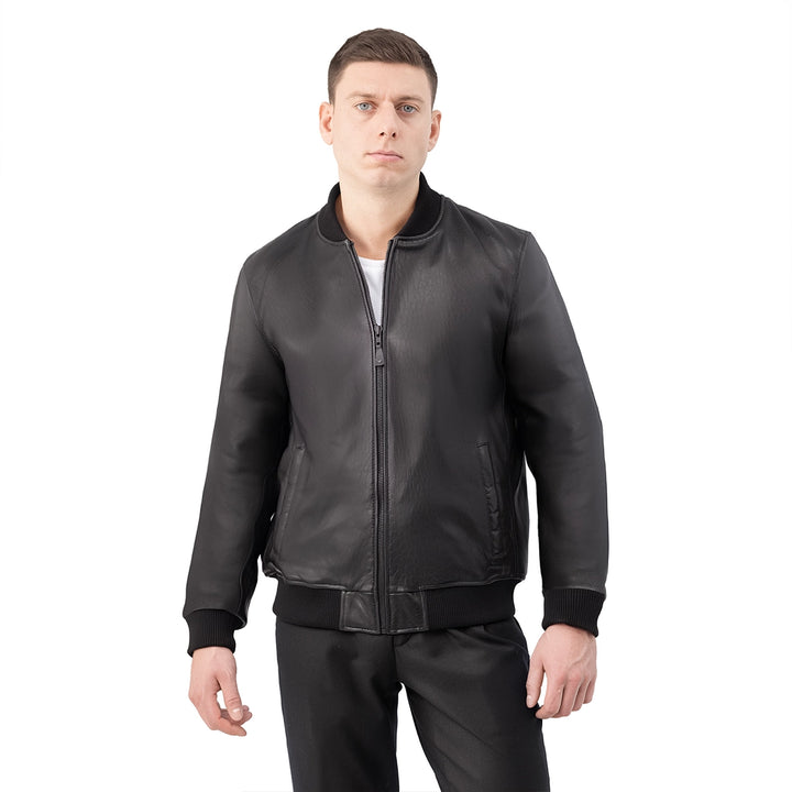 Dravis Mens Leather Bomber Jacket